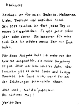She is a Japanese artist and engages in illustration, artist books and animation. In 2019 she completed a Bachelor of Arts degree in Integrated Design at the University of the Arts Bremen, Germany. There she´s now continuing to study at the School of Visual Combinations (Master Studio).